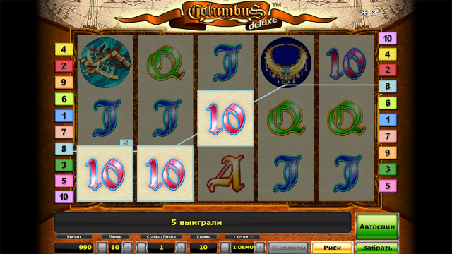 Слот Columbus Deluxe выпущен австрийским разработчиком Novomatic. Релиз состоялся 19 марта 2008 года. Аппарат популярен среди посетителей онлайн-казино, так как наделен простыми правилами, широким диапазоном ставок и бонусными функциями. Перед запуском спинов игроку требуется установить величину ставки и выбрать количество активных линий. Операции легко выполняются на панели управления.