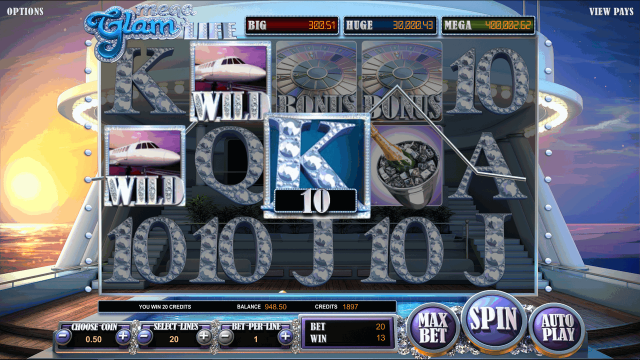 Игровой аппарат Mega Glam Life выделяется роскошным оформлением и красивой 3D графикой. Основные достоинства слота — крупные коэффициенты выигрышей, выгодные бонусные опции, фриспины с дополнительными множителями, наличие прогрессивного джекпота, высокий уровень отдачи. Не хватает только риск-игры на удвоение.